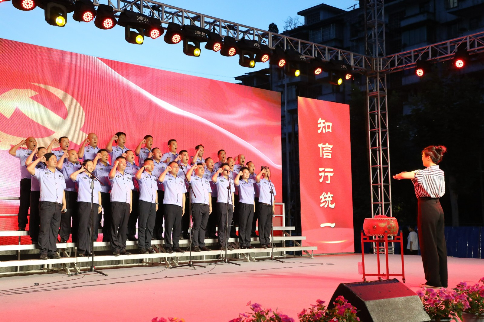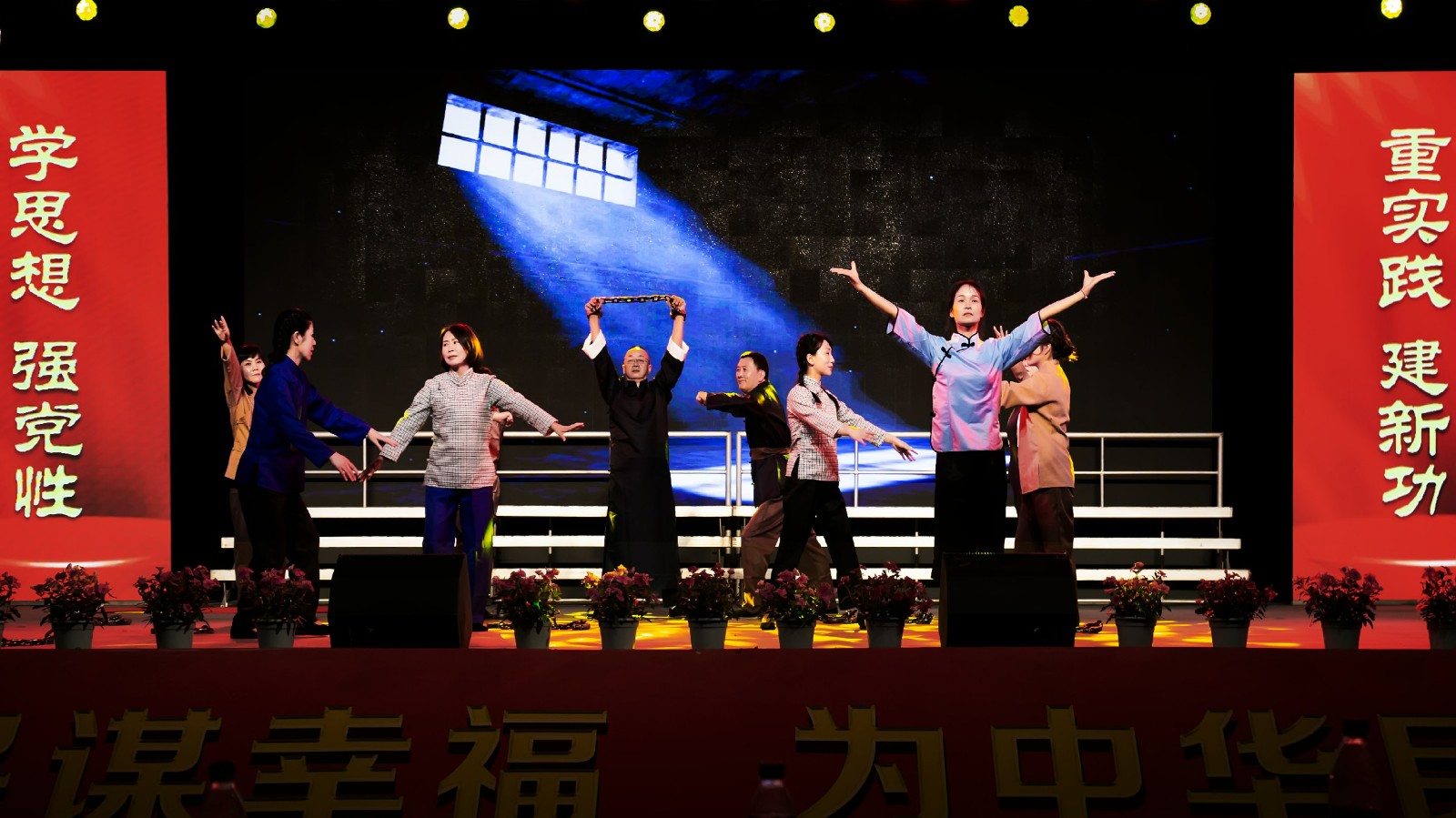 晚会中,精彩的文艺表演适时穿插,嘉阳煤矿的歌伴舞《新征程》展示了当代矿工奉献拼搏的精气神,公司团委朝气蓬勃的青年以RAP形式《说唱嘉阳》,凸显了厚重的嘉阳历史和文化,综合服务公司的情景剧《绣红旗》再现了革命岁月党员对革命坚定的信仰和必胜的信心。晚会在全场铿锵有力的《嘉阳矿歌》声中圆满落幕。