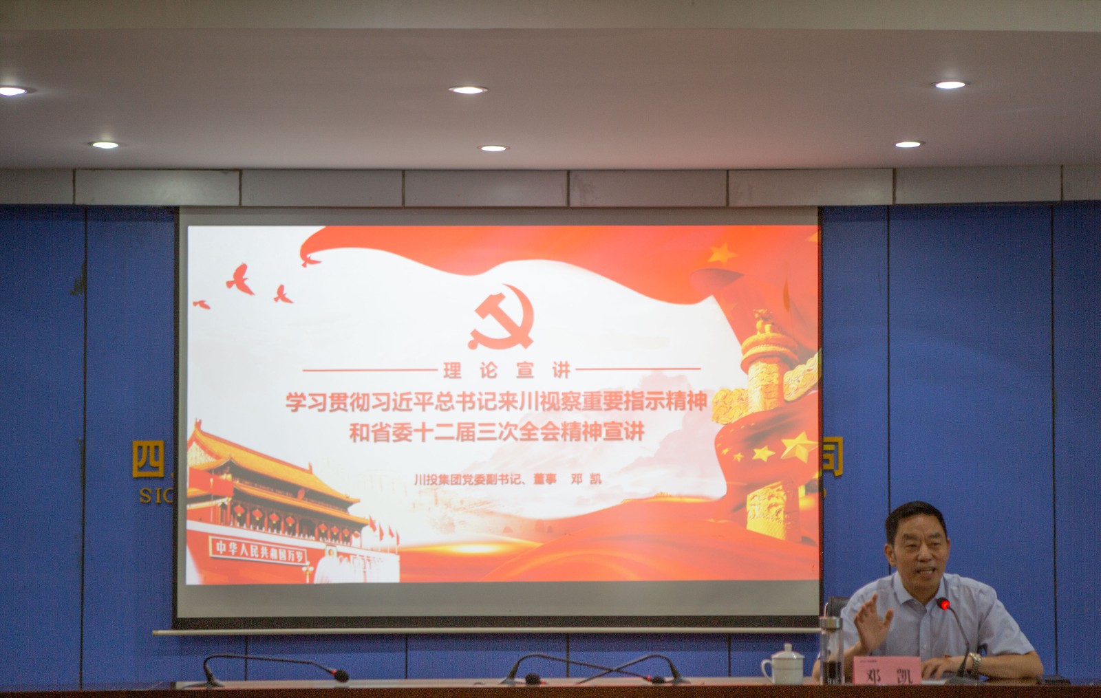 9月12日,集团公司党委副书记、董事邓凯到川投峨铁公司宣讲习近平总书记来川视察重要指示精神和省委十二届三次全会精神。